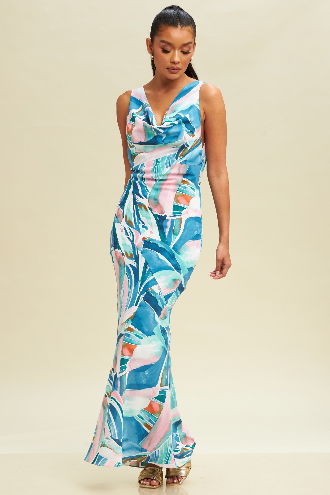 Strapple drapeado cruzado print con abertura en pierna