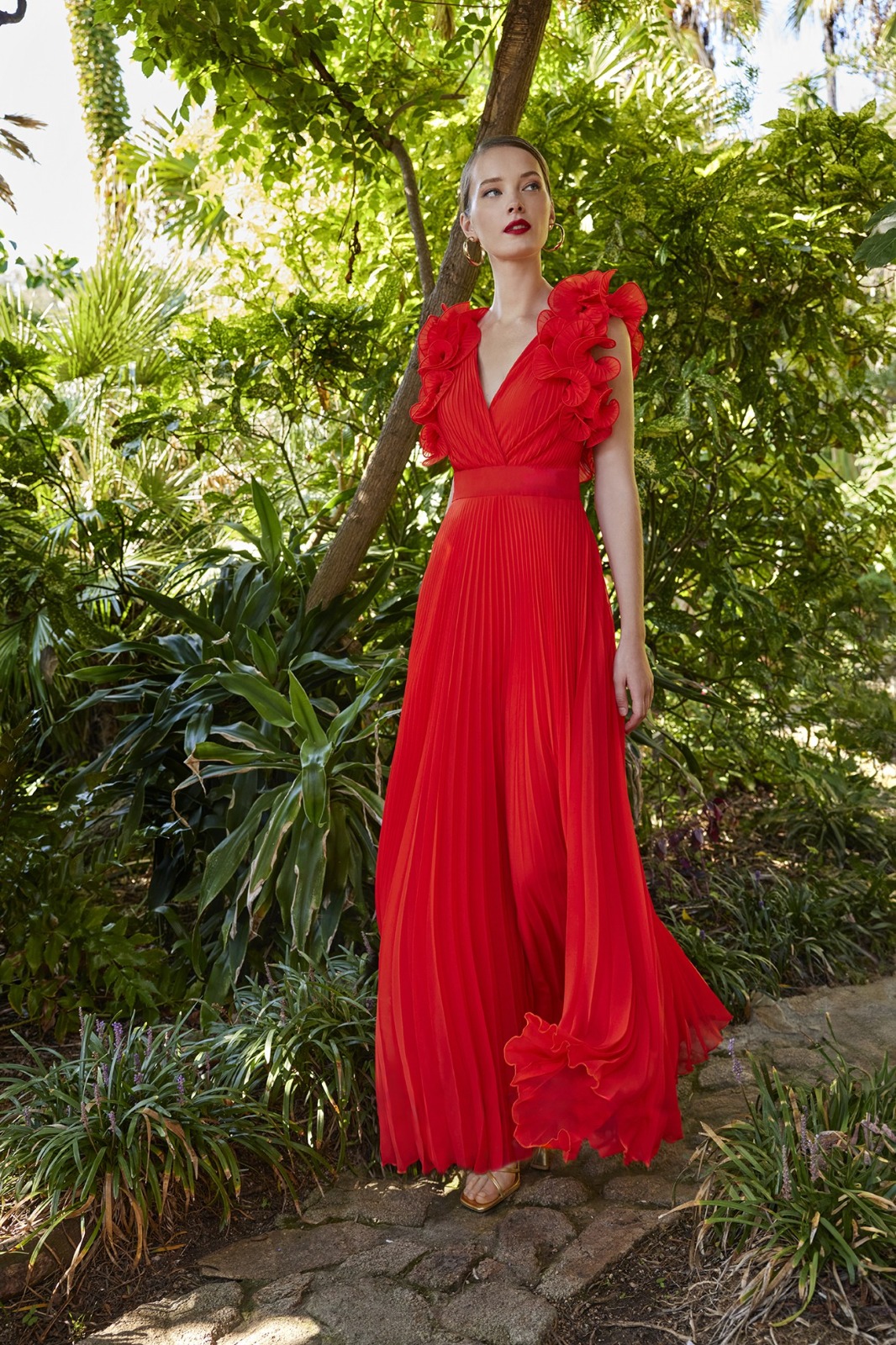 Circular vaporoso plisado de tirantes con olanes sin espalda