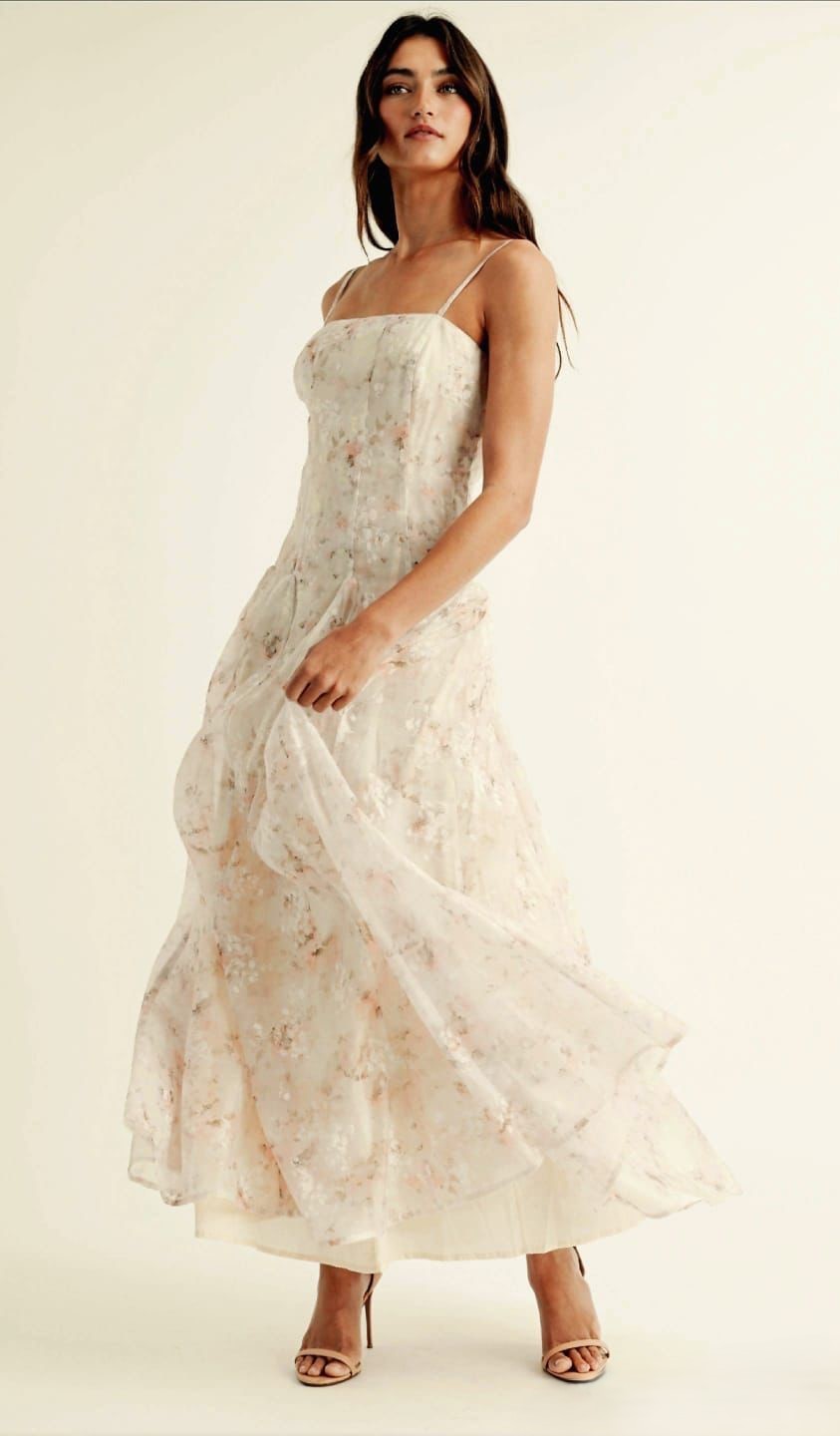 Corte A floral escote recto con tirantes