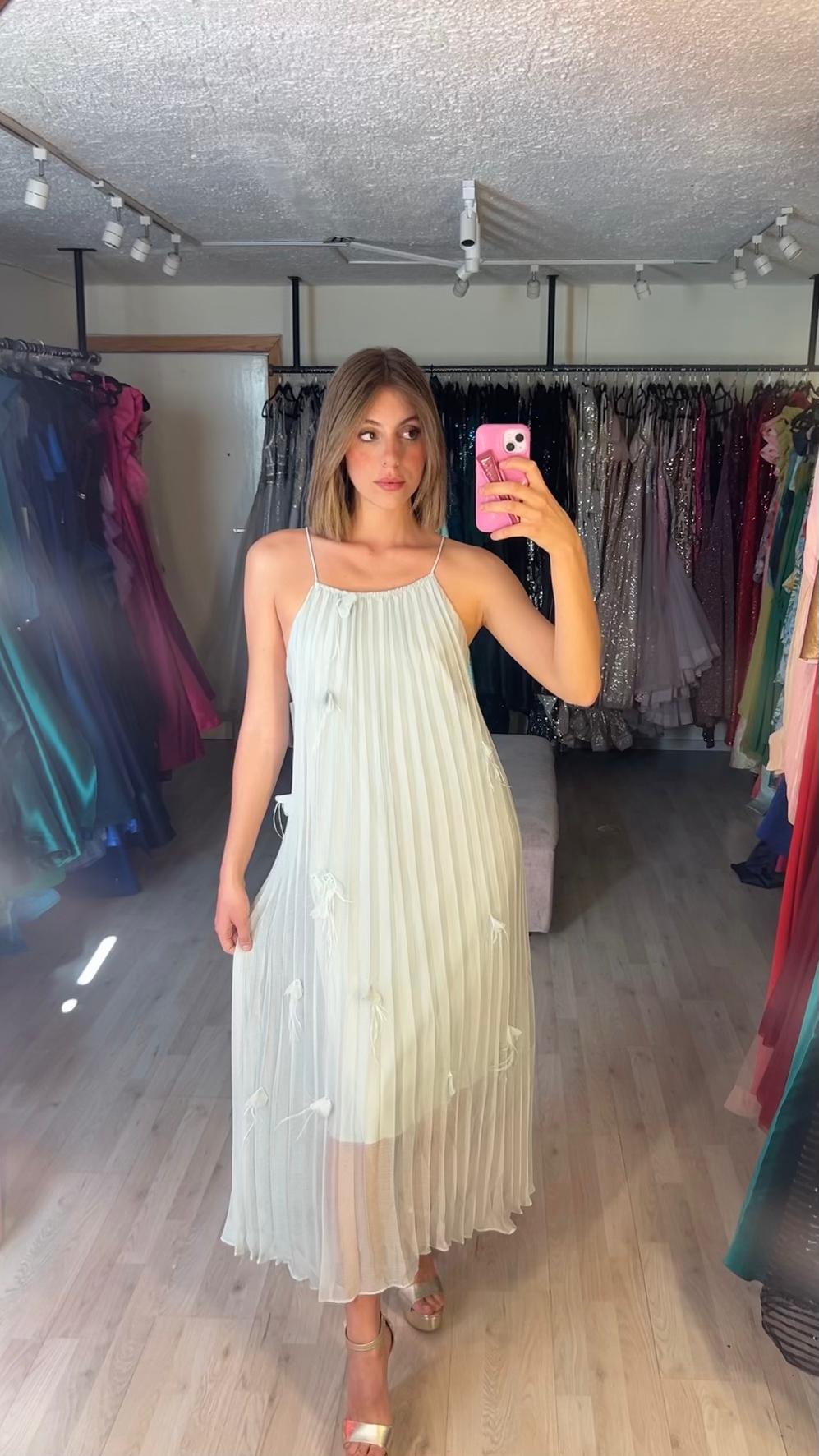 Plisado con tirantes y flores 3D