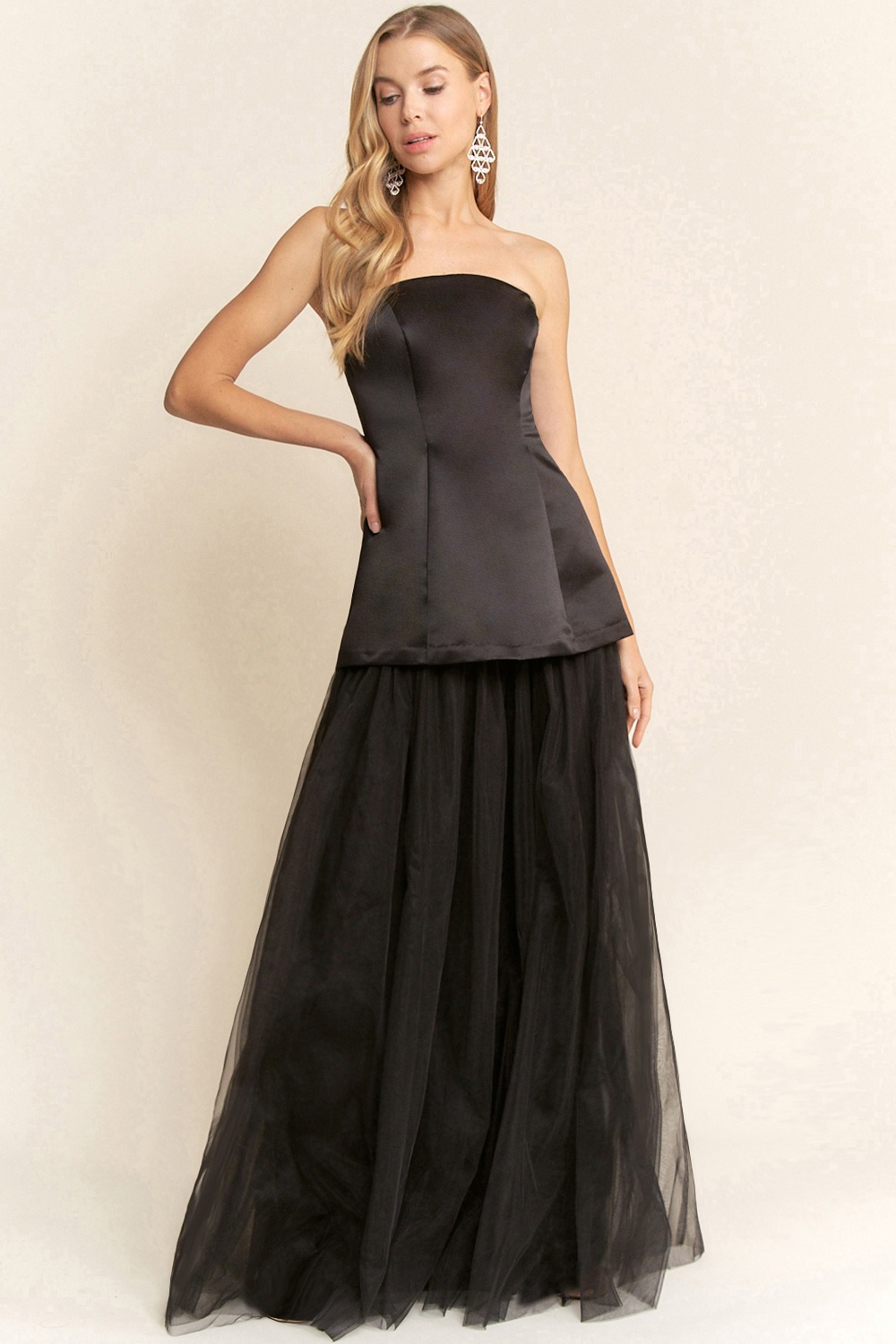Strapless corte en A tafeta con tul
