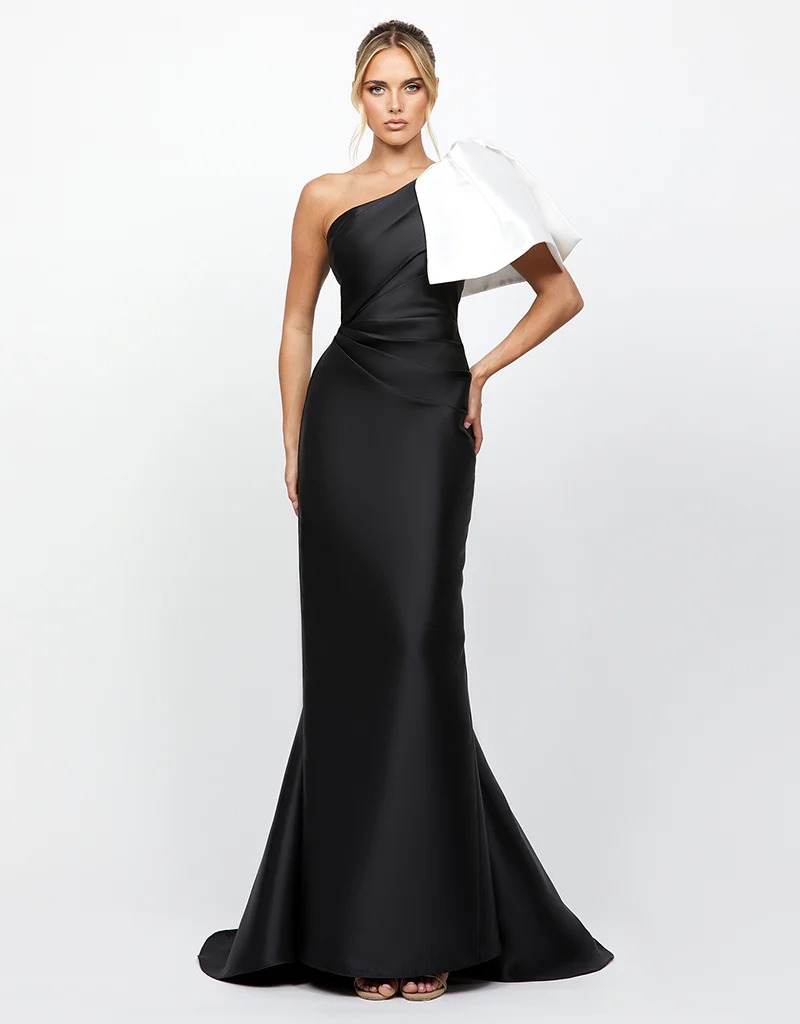 Tafeta un hombro moño drapeado