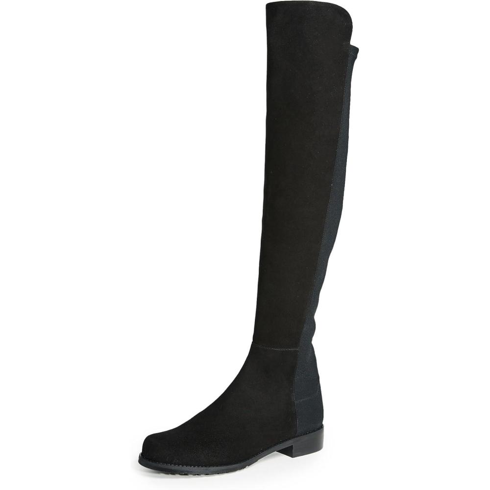 Stuart Weitzman Women’s 5050 Flat Boots(Black Suede/Stretch Gabardine)