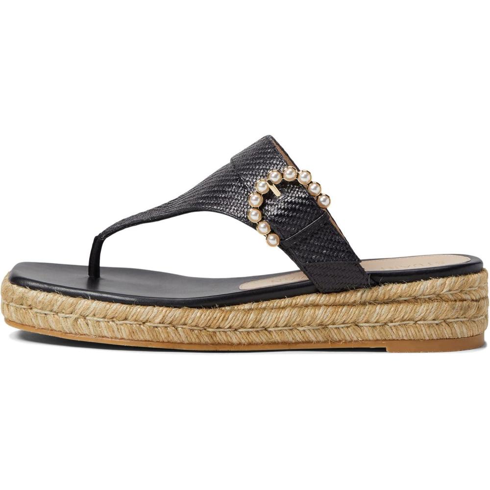 Stuart Weitzman Pearl Buckle Espadrille Sandal(Black)
