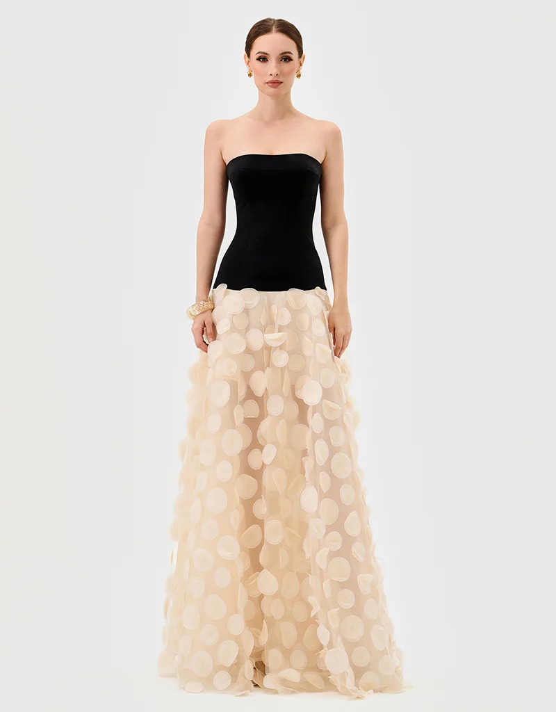 Strapless línea A falda tul círculos