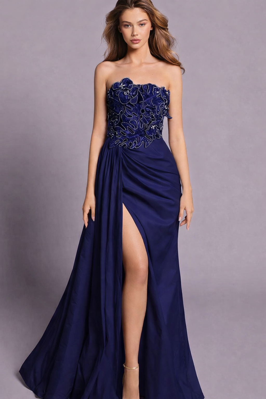 Satin strapless pierna abierta