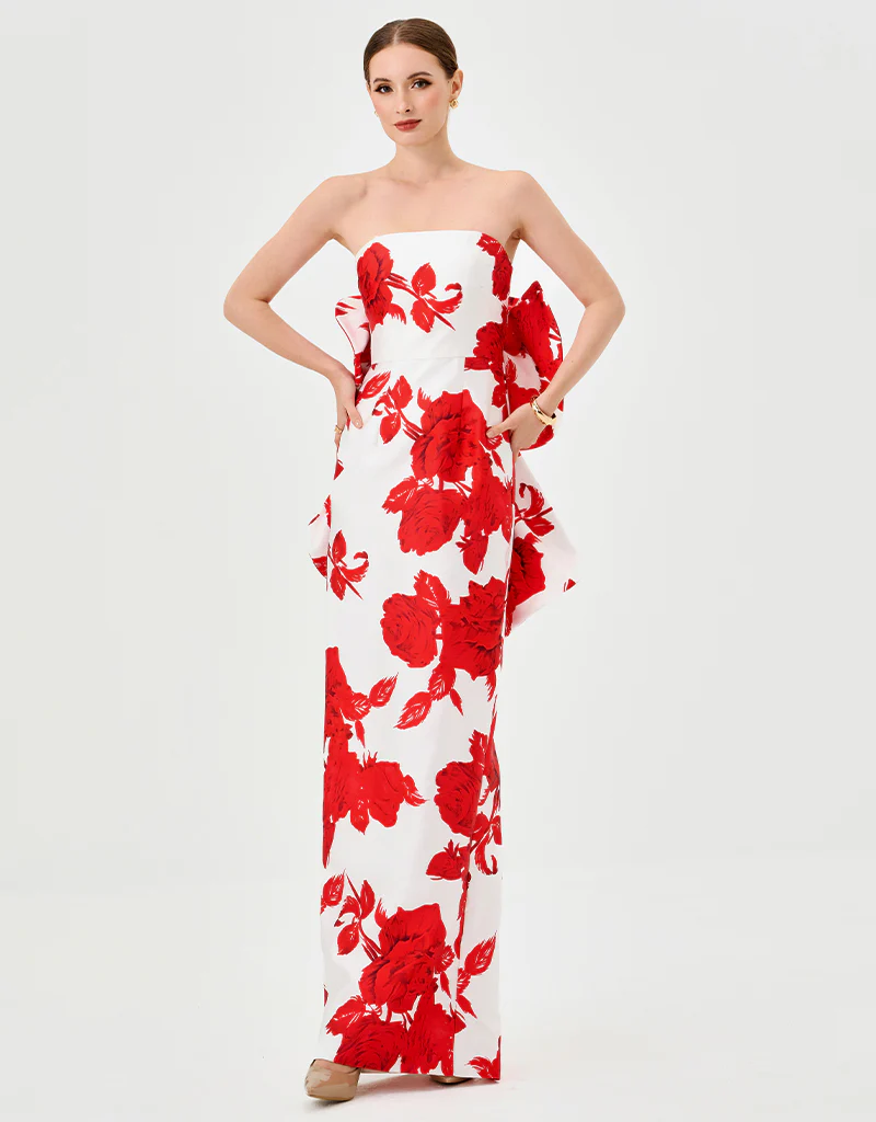 Strapless detalle moño pierna abierta