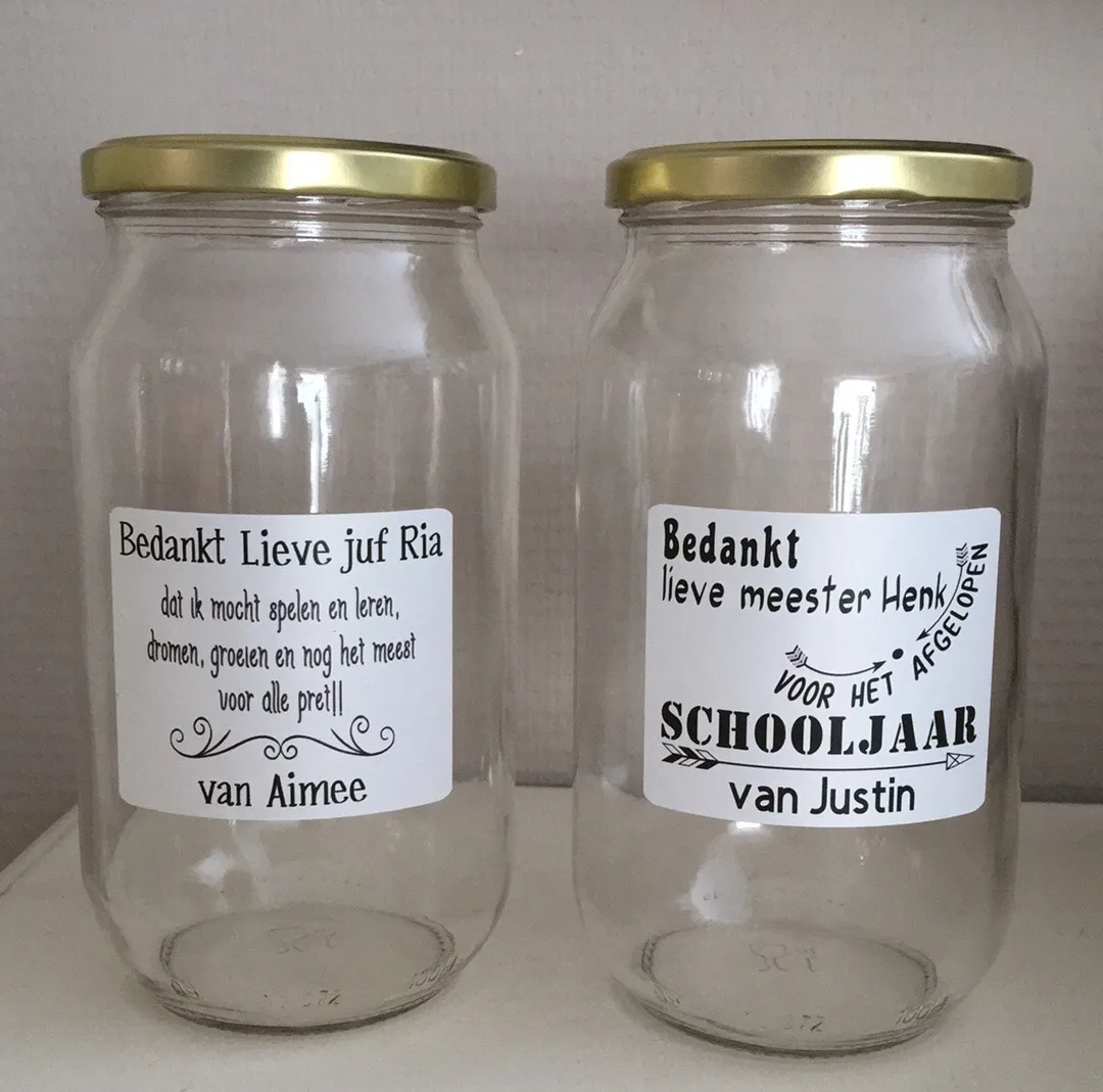 Glazen pot met sticker